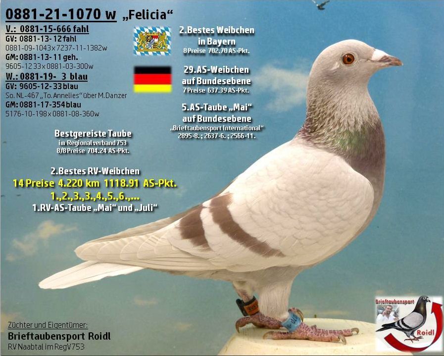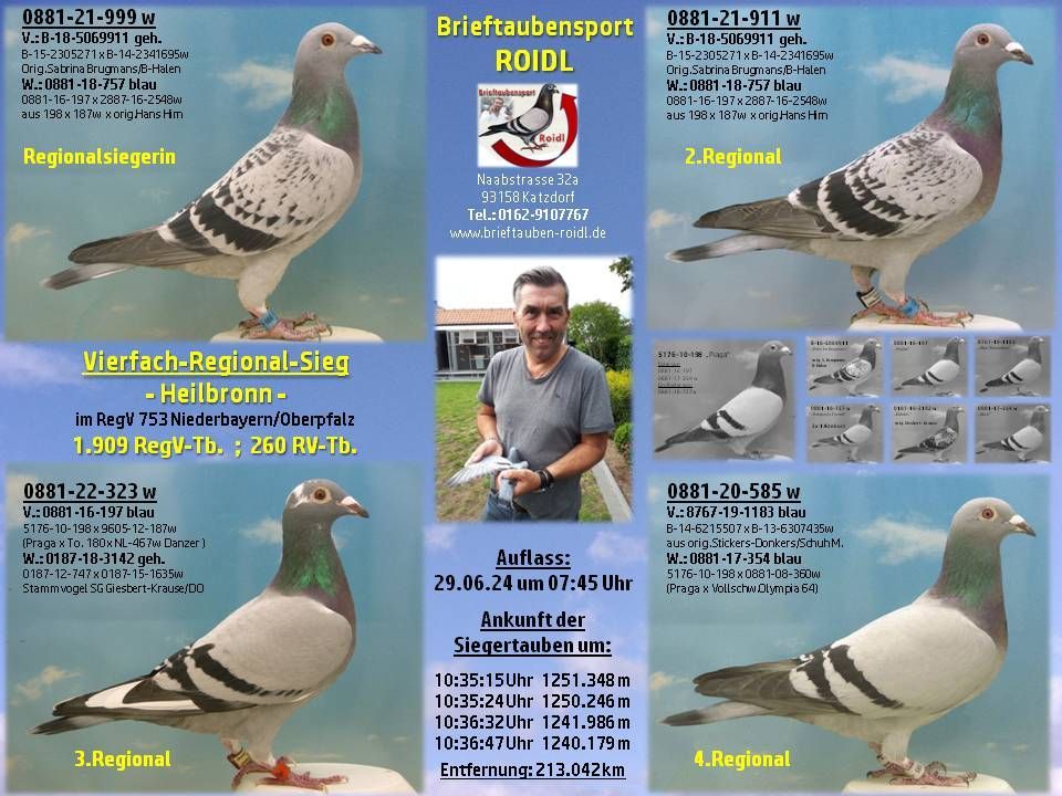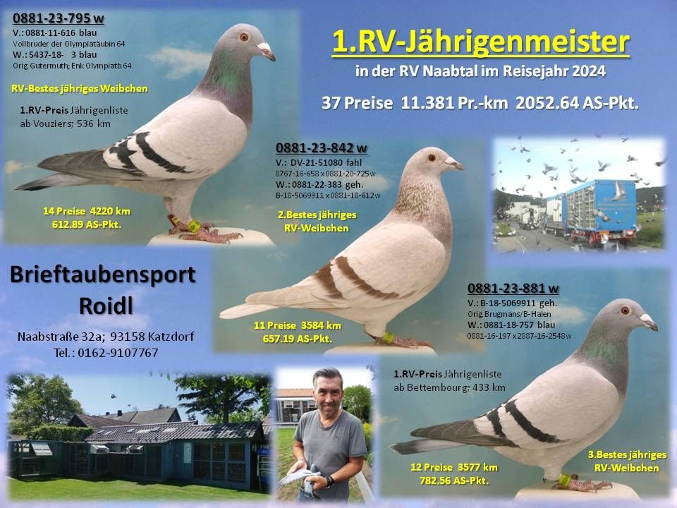 Tel.: 0162-9107767 oder per Mail: raimund.roidl@brieftauben-roidl.de