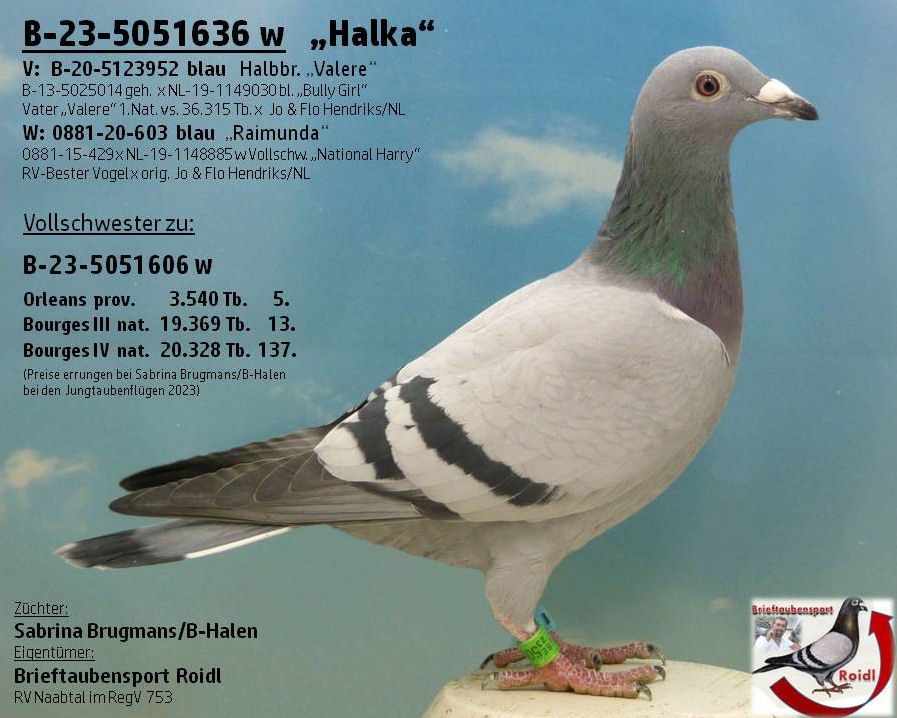 "Halka" ist eine Vollschwester zur Supertäubin B-23-5051606 w