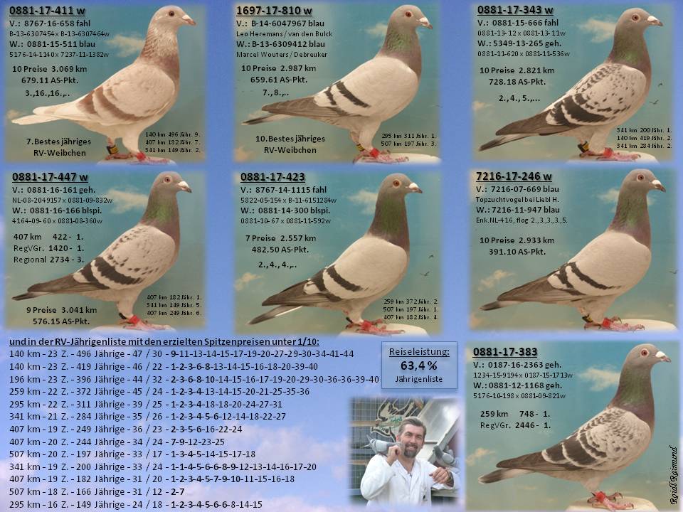 48 Jährige (davon 14 Vögel) waren damit schon manches mal unser eigener ärgster Konkurrenten. Die Gefahr besteht natürlich auch darin, dass in der Haupt-Mannschaft die eine oder andere top Jährige fehlt. 2017 hat uns das den Titel des Regionalverbands-Weibchen-Meisters gekostet.