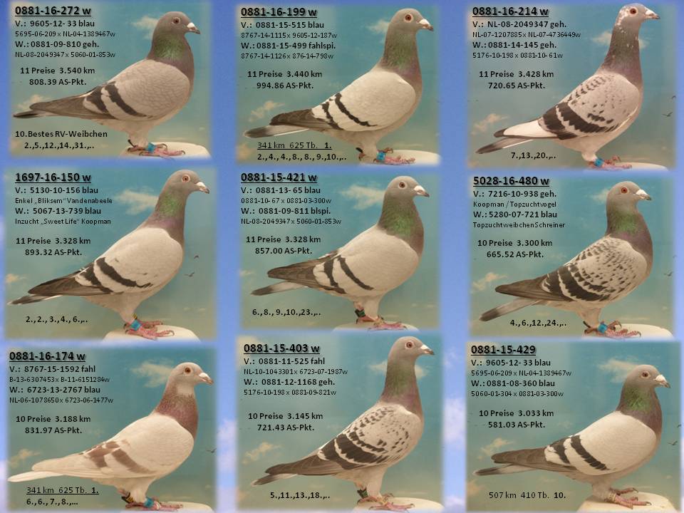 Von den 130 möglichen Preisen bis zur 10.RV-Taube (13 Flüge), errangen unsere Tauben 74 !!!