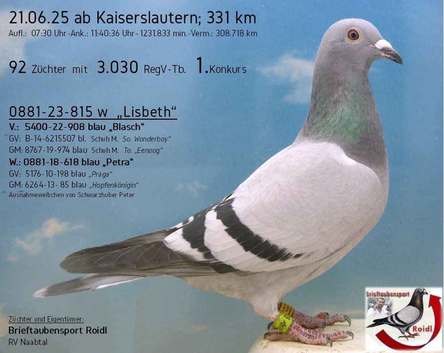 Bestgereister Vogel - 1.AS-Vogel - 4.Bestes Weibchen im Regionalverband 753 - 2x 1.Konkurs gg. 3882 und 3030 RegV-Tb. - 2x 1.Konkurs "Jährige"