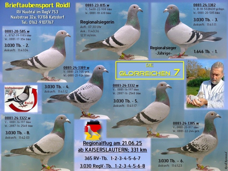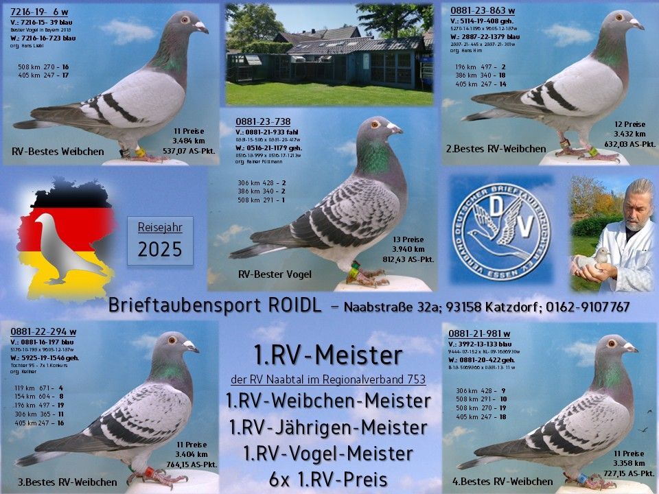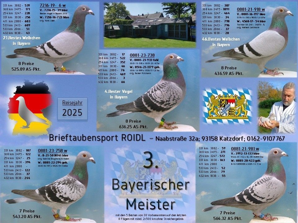 4.Beste Vogel und das 21.Beste Weibchen in Bayern. Dennoch wird die abgelaufene Saison bei mir in Erinnerung bleiben, als eine, die geprägt war von vielen schmerzhaften Verlusten. Die 0881-17-411w mit 92 Preise und 5x 1.Konkurs, blieb genauso auf dem Feld der Ehre wie die beiden Regionalsieger 2025 (siehe Bild unten). Über den Jungflug wollen wir erst gar nicht reden.